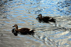 写真のような、カモやコイは野川の至る所で見かけることができます。
