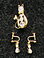 猫のイヤリングとブローチのセット